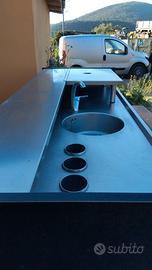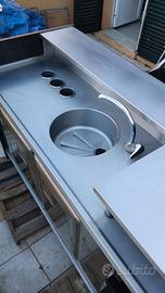 Vendo bancone professionale per bar o ristorante in acciaio inox, praticamente nuovo come da foto. Il bancone è completo e già attrezzato con: Lavello integrato con rubinetto Piano di lavoro ampio e resistente Vani sottostanti refrigerati con griglie interne Struttura robusta in acciaio inox, facile da pulire e ideale per uso professionale Perfetto per bar, ristoranti, chioschi o attività di street food. Condizioni eccellenti, mai utilizzato realmente (pari al nuovo).