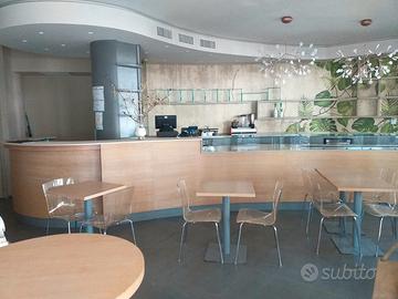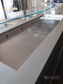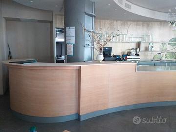 Per cessata attività si vende un bancone completo , il frontale di metri lineari 8,80 con base in legno robusto e compatto con facciata in legno naturale impiallacciato a mano con luce a led notturno a scomparsa , piano di lavoro parte in corian e parte in pietra granitica , robusta e non assorbe unto... Mensole in vetro per riparare le pietanze , plateau refrigerato di 2,10 metri e cella Frigo con 2 ante e 4 cassettoni ! Il banco posteriore di metri lineari 7,00 e' con base di legno robusto e compatto, con una laccatura colore grigio nella facciata, piano di lavoro interamente in corian , lavello in acciaio inox a 2 fori e miscelatore con leva , cella Frigo a 2 ante grandi , predisposizione per macchina da caffè e foro per il profondi ! Pedana lunga 8,80 x 90 cm di larghezza in robusto legno marino di 2,5 cm di spessore, tutto tenuto maniacalmente!!!!! Di quanto descritto si richiede € 9800. Volendo gli si può aggiungere un fabbricatore del ghiaccio della Brema da 40 kg , una lavatazzine della Aristarco , un Desalinatore anti calcare per proteggere i macchinari , un gassificatore per acqua gassata dal rubinetto!!!! Per un totale di tutto compreso € 12500. Sono disponibili con prezzi a parte 6 tavoli in legno naturale , 10 poltroncine della Colico e 4 sgabelli alti regolabili della Colico in plexiglass con erba palustre inserita.