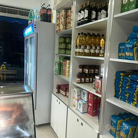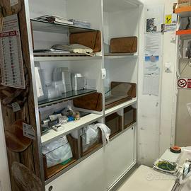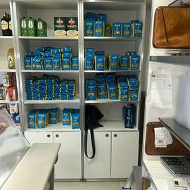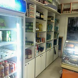 Vendo bancone pane più Vetrinetta refrigerata per contorni. Scaffalatura completa per pane e panini con cassetti e ripiano sottostante con porta scorrevole. Scaffalatura per pasta, scatolami, caffè, zucchero ecc.