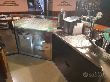 Vendo autentico bancone da pub irlandese, tutto massiccio, con tre impianti frigo perfetti, ottime condizioni. Forma esagonale, totale oltre 9 metri, già smontato in 4 grandi blocchi (quindi anche adattabile con forma e misure diverse), senza sgabelli.