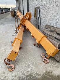 Bilanciere Teci a croce regolabile portata 15.000kg, lunghezza 4200x4200mm. Anno 2009. Interasse ganci 4000mm e 3000 attacco centrale delle due travi tramite falla. Materiale lamiere e profili in acciaio conforme UNI EN 10025. Trattamento dí verniciatura colore RAL2000. Compreso di ganci, grilli, disegni, certificazione, collaudo secondo le vigenti normative.