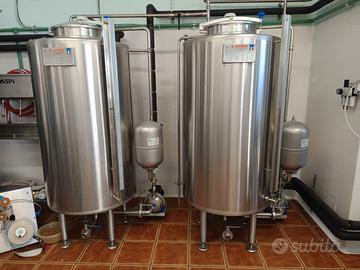 birrificio artigianale vende impianto completo con sala cottura da 300 litri marca Spadoni. L'impianto è cosi composto: -- sala cottura MBS 300/e ( 2 tini con generatore elettrico a circolazione di olio diatermico) entrambi i tini riscaldati e possibile effettuare la doppia cotta nella stessa giornata (ossia 600 lt). -- 1 serbatoio di acqua calda da 500lt. compreso di autoclave e con pompa centrifuga. -- 1 serbatoio di acqua fredda da 500lt. compreso di autoclave e con pompa centrifuga. --gruppo di ossigenazione mosto include gruppo filtro assoluto, flussimetro aria, candela sinterizzata. -- conta litri fiscale krohne optiflux 6300 -- scambiatore di calore -- Quadro elettrico generale di comando, controllo e distribuzione. l'apparato e controllato e comandato attraverso un plc siemens con interfaccia touch screen e software di gestione personalizzabile. -- 3 unitank serbatoi di fermentazione e maturazione refrigerati capacità totale 750 lt. -- mulino 200kg/ora Roppi 600 -- riempitrice 6 becchi -- pompa carrellata inox 1.1kw aisi 304 -- etichettatrice semi automatica --cella frigo. Prezzo 37000+iva Per info scrivere all'indirizzo email romanof04@gmail.com o telefonare al numero 3451556796 (Fabio)