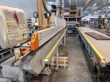 Bordatrice, con rettifiche, con colla PU, Intestatori, sgrossatore, spigolatore , arrotndatore a 4 motori, raschia bordo, toupiè, raschia colla, spazzole e phon, con liquidi.
