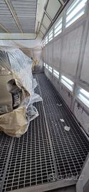 Cabina forno di verniciatura mt. 7x4 con basamento metallico, luci alte e basse, bruciatore vena aria, inverter. Gruppo unico per immissione ed estrazione aria. Quadro touch screen.