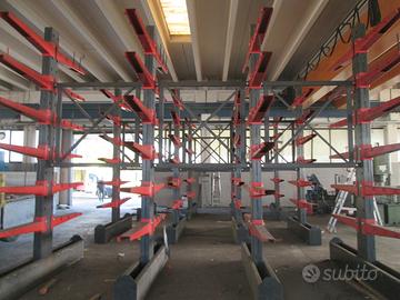 Vendo cantilever in buono stato con tabella delle portate (1000kg ogni braccio) Ogni montante 12 braccia ( 6 per lato) con divisori per verghe. Altezza montante 4,30 m larghezza max 2,70 m, braccia da 1,20m Prezzo per ogni montante con 12 braccia. Disponibili 12 pz .