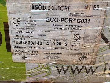 Vendo cappotto termico Isolconfort ECO-POR® G031, un isolante in polistirene espanso sinterizzato (EPS) additivato con grafite (Neopor® di BASF) con spessore di 14 cm, ideale per isolamento ad alte prestazioni. Materiale nuovo, disponibilità totale di 600mq. Pronto all'uso, già palletizzato e facilmente caricabile con muletto. Astenersi perditempo.