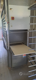 Vendo caricatore gerosa perfettamente funzionante per forno a piani per caricamento manuale o in abbinamento a spezzaciabatte / gruppi/linee automatiche + 2 carrelli compresi di relai i carrelli sono in acciaio inox dotati di teli di copertura per la lievitazione degli impasti. Le operazioni di carico,carrello vuoto e scarico, carrello pieno nel prometeo avvengono rispettivamente in un unica operazione della durata di circa 15 secondi. In vendita per cessata attivita per pensionamento. Garanzia di un anno. I telai sono dimensionati per funzionare su forni con dimensioni di profondita utile di cottura di 160 cm