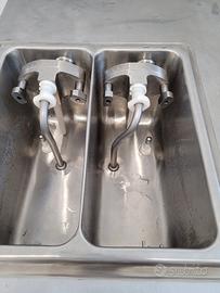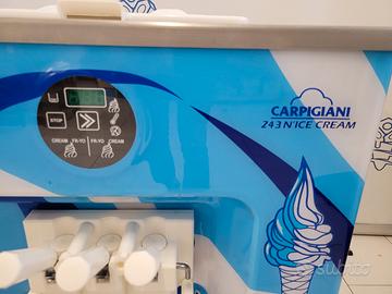 Le Carpigiani 243 N'Ice Cream sono macchine a due gusti più il misto, ideali per una offerta più ampia di gelato soft e frozen yogurt per una clientela più esigente. Selezionando opportunamente i comandi con la Carpigiani 243 puoi produrre: crema+crema; crema+frutta; crema+yogurt; frutta+frutta; frutta+yogurt; yogurt+yogurt. La macchina è in ottime condizioni, è stata ferma per circa 7 anni, praticamente nuova. Caratteristiche: Macchina a pompa : SI Consensazione : acqua Capacità vasche : 8+8 litri Produzione porzioni 75g : 300 / ora Alimentazione 380v 50/hz Dimensioni : 55 cm x 73 cm h 88 La macchina gode di garanzia Spedizioni in Italia ed all'estero. Verifica la macchina che vuoi acquistare. -Vieni di persona a trovarci in via Tirino 272/3 - Pescara, o vai su Google maps e digita GELATOTECH, PESCARA. -Manda un tecnico di tua fiducia, -Richiedi un video del funzionamento della macchina, o ulteriori foto. -Richiedi una diretta col cellulare per vederla in funzionamento. Disponiamo anche di banchi per granelle per yogurt/gelato, vendiamo tanti tipi di granelle molto originali, abbiamo una promozione sul nostro yogurt. Disponiamo di mantecatori, pastorizzatori, machine per gelato e soft/yogurt delle migliori marche, Carpigiani, Frigomat, Cattabriga, Gel Matic, Coldelite, trittico Bravo, Pastochef, softeismaschinen, eismaschinen, pasteurisierer