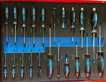 CARRELLI PORTAUTENSILI NUOVI CON 6 CASSETTI TRA CUI 4 COMPLETI DI ATTREZZATURA (VEDI FOTO), 2 DI DEPOSITO E SPORTELLO LATERALE. CHIAVI IN CROME VANADIUM CON DUREZZA 52 TESTATA E CONTROLLATA. NELLA CONFEZIONE CI SONO PRESENTI LE 4 RUOTE E MANICO PER IL TRASPORTO.