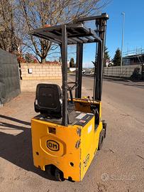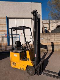 Carrello Elevatore Muletto Transpallet Elettronico "OM E8N", portata kg. 800, sollevamento Duplex a grande visibilità a mt. 4,00, traslatore idraulico, frenatura con recupero d'energia, 3 ruote super elastiche antiforo al 80%, batteria trazione corazzata 24 Volt con R.A., carica batteria 380 Volt, protezioni antinfortunistiche a norme, marchiata CE. Ben funzionante, vendo. Dimensioni : Larghezza mm. 850 Lunghezza mm. 1700 Altezza mm. 2500