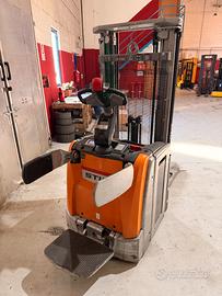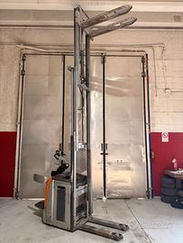 Carrello Elevatore Muletto Transpallet Stoccatore timonato Elettronico "STILL EXV-SF 14", ultimo modello, portata kg. 1400, sollevamento Triplex Gal mt. 4,50 , pedana e braccioli porta uomo, forche per Europallet lunghezza mt. 1,20, frenatura automatica, ruote in vulkollan, batteria Trazione Corazzata 24 Volt, carica batteria 220 Volt, protezioni antinfortunistiche a norme CE. Ben funzionante, vendo. Dimensioni : Larghezza mm. 1080 Lunghezza mm. 2170 Altezza mm. 1914