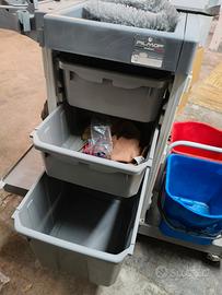 Carrello professionale per pulizie filmop. Ne ho disponibili 2 carrelli come in foto e 1 più corto. Senza oggetti 180 euro, completo di attrezzatura 3 cassetti, 2 secchi e strizzamop 300 euro. Zona di ritiro roma Cinecittà / capannelle
