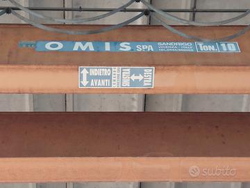 vendesi 2 carroponti identici, portata 10 tonnellate , costruzione 2001, marca Omis spa, larghezza appoggio 19,15 mt, libretti da richiedere alla produttrice. Richiesta per i due carriponte € 10.000