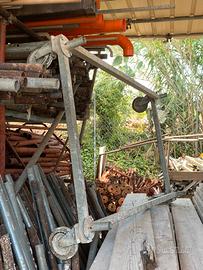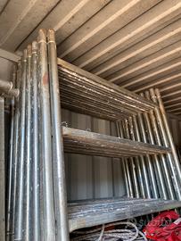 N 1 trabattello da 10,70 metri di altezza base 2,70x 1,15, completo di n. 4 livellatori stabilizzatori e da n. 3 piani completi di botola professionale Euro 1400,00 oltre iva;