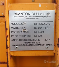 Cassone in ferro con attacchi per sollevamento dall'alto e con area staffe per la sua movimentazione con carello elevatore / muletto, in basso.