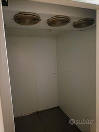 Cella frigo temperatura positiva, origine ANGELO PO. Misure interne 133 x 193 x h205 - dimensioni esterne 144 x 205 x h218. Motori recenti e perfetti da posizionare sopra, a fianco o come nel mio caso all'esterno.