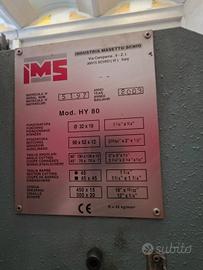 Vendesi CESOIA PUNZONATRICE UNIVERSALE IMS HY 80 IDRAULICA ANNO 2003 USATA. Macchina in perfette condizioni con possibilità di poter effettuare 5 lavorazioni, completa di punzoni e accessori. Disponibile a prova e visione previo appuntamento telefonico (Machinery Market)