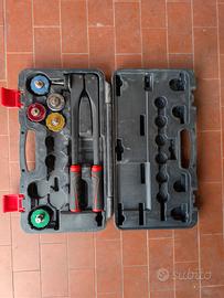 Per chiusura attività vendo attrezzatura. Tutto quello che riguarda condizionamento certificabili per f-Gas Pompa vuoto, cartellatrice a batteria, manometri, bilancia, bicchieratrice, rivelatore gas, termometro, ecc. Filiera elettrica da 1/2 a 2" rems usata veramente poco. Girello per posa impianto a pavimento. Alcuni giratubi, trapani, avvitatori Milwaukee borse, carrello Milwaukee.
