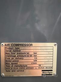 Compressore a vite atlas copco GA15 potenza 15 kw, tutti i dati sono nella foto in targhetta. Appena revisionato da Kaeser filtri cinghie ecc. no perditempo prezzo non trattabile solo chiamate al
