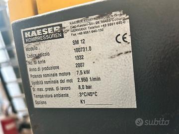 Vendo compressore Kaeser sm12 da 7,5kw Completo di essiccatore e serbatoio. Ore 5413 Prezzo trattabile Possibilità di trasporto in zone limitrofe