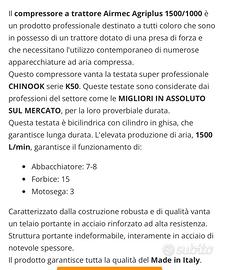 Compressore per presa di forza del trattore, usato ma con gruppo compressore Chinook sostituito, nuovo! Alta portata, supporta numerosi attrezzi da lavoro.