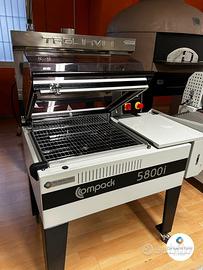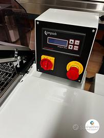 Compack 5800i -compatta ed efficiente per medie volumi. Progettata per produzioni da piccole a medie, unisce versatilità, robustezza e facilità d'uso, ideale per chi cerca affidabilità senza sacrificare lo spazio . Caratteristiche principali obarra saldante 58 × 43 cm,perfetta per imballi compatti oVelocità produttiva di 5-10 confezioni al minuto nella versione standard oSistema di sigillatura intelligente che regola il calore in base al ciclo, garantendo alta qualità, durata e risparmio energetico oEquipaggiata con timer e temperature digitali, fermo magnetico automatico della campana ,perforatori regolabili per lo sfiato dell'aria, e ruote integrate per facilitarne lo spostamento all'interno dello stabilimento. Supporta film POF (7-37 µm) e PVC (15-25 µm), con diametro massimo del rotolo di 12? (circa 30 cm) e larghezza film fino a 20? (50 cm) Dotata di vassoio regolabile in altezza e predisposizione ergonomica per il caricamento del film . Vantaggi rispetto ad altre confezionatrici: o Dimensioni ridotte : occupa poco spazio pur mantenendo alta performance -- ottima per ambienti con limitazioni di spazio . o Versatilità: possibilità di confezionare sia manualmente che semi-automaticamente, con comandi digitali facili da usare. o Acesso rapido e manutenzione componenti di marca, ricambi disponibili, assistenza tecnica affidabile . o Risparmio operativo e maggiore durata: grazie alla gestione intelligente della potenza e ai relè a stato solido, la macchina è silenziosa, efficiente e duratura . o Mobilità interna: grazie alle ruote, si può spostare facilmente secondo necessità PER INFO : De Ioanni Forni Vendita e assistenza attrezzature nuove ed usate per: panifici,pasticcerie,pizzerie,ristoranti,pub,bar,gelaterie,industrie dolciarie, usato garantito Z.ind.Z2 Ponte Valentino 82100 Benevento