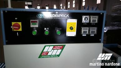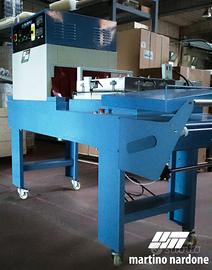 CONFEZIONATRICE ANGOLARE SEMI-AUTOMATICA CON TUNNEL INTEGRATO. Funzionamento meccanico: la chiusura del telaio di saldatura avviene tramite un cilindro meccanico, a questo punto si avvia il tappeto di saldatura che trasferisce il prodotto confezionato all'interno del forno per la retrazione. Abbassamento e riapertura delle barre saldanti poste sul braccio (tramite pedale o in automatico), tempo di saldatura e tempo di avanzamento del nastro nella zona di saldatura temporizzabili. Lama saldante integrata nella parte superiore del braccio di saldatura che sostituisce l'ormai obsoleto filo di saldatura. Due nastri indipendenti, uno nella zona di saldatura e l'altro nel tunnel di retrazione. Altezza del telaio nella zona di saldatura regolabile. Efficiente sistema di sicurezza a norme CE provvede a garantire l'incolumità delle mani dell'operatore. Lo stesso tunnel dispone di serrande di parzializzazione dell'aria per ottenere la migliore retrazione anche nei casi difficili.