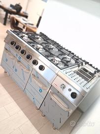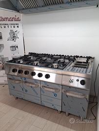 CUCINA A GAS CON 6 FUOCHI E TRIPLO VANO CON ANTE BATTENTI.
