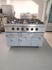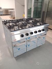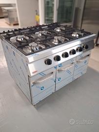 CUCINA A GAS CON 6 FUOCHI E TRIPLO VANO CON ANTE BATTENTI.