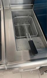 Vendesi blocco cucina professionale in acciaio inox, ideale per ristorazione, catering, bar o laboratori. Attrezzatura robusta, di alta qualità (Made in Italy) e in ottime condizioni estetiche e funzionali. o Forno Professionale Modular Pratika: Forno a convezione ad alte prestazioni, ideale per panificazione, pasticceria e gastronomia. Design compatto e affidabile. o Piano Cottura a Gas (2 Fuochi): Fuochi ad alta potenza con griglie in ghisa ultra-resistenti e vasca raccogli-gocce smaltata per una pulizia rapida. o Fry-top / Piastra Liscia Modular: Ampia superficie di cottura in acciaio ad alto spessore, perfetta per carne, pesce o verdure alla piastra. o Friggitrice a Pozzetto Singolo: Completa di cestello in acciaio inox e zona fredda per mantenere l'olio pulito più a lungo. o Lavastoviglie Sottobanco DIHR: Macchina professionale a ciclo rapido, inclusiva di cesti, ideale per bicchieri e stoviglie. Installata sotto il piano lavello per ottimizzare lo spazio. o Lavello con Piano Sgocciolatoio: Ampia vasca in acciaio inox con miscelatore professionale e vano porta detergenti.