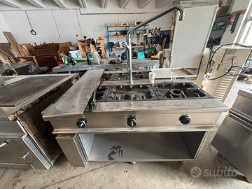 Gas a 6 fuochi con rubinetto acqua centrale Vano a doppia piastra Friggitrice doppia Tutto perfettamente funzionante. Vendo per passaggio a cucina più piccola.