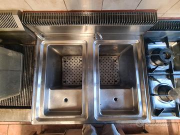 Cuocipasta professionale a metano made in Italy BERTO's modello CPG 80 completo di documenti, largo 80cm, profondo 70cm, alto 90 (vasca da 25 litri, profonda 35cm, larga 27cm, alta 27cm ), completo di 4 cestelli in inox da 11x32x25. E' tutt'ora in funzione ma evidenzio che 6 anni fa ho rifatto il fondo di entrambi in quanto la vasca di destra (quella usata quotidianamente mentre la sinistra è stata usata saltuariamente) si era fessurata. Disponibile alla visione e prova, possibilità di trasporto gratis fino a Forlì ma non spedisco. Per qualsiasi informazione chiamatemi al 3482590574 solo se realmente interessati in quanto non ho tempo da perdere, grazie