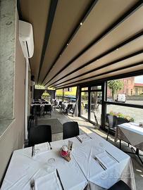 Dehor Brianza Tende, con vetri sali e scendi, luci led incorporate nella tenda. Tenda automatica con telecomando. Ottimo stato Misure 12.80x3 Struttura Color antracite, totalmente modulabile.