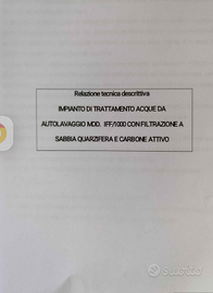 Depuratore per Autolavaggio con sistema di filtraggio a sabbia quarzifera e carboni attivi, elettro pompa potenza 3 HP, completo di certificato di conformità,libretto uso e manutenzione e relazione tecnica descrittiva, ritiro in zona a carico dell'acquirente, prezzo poco trattabile