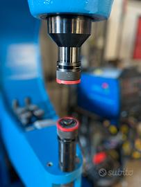 Macchina praticamente NUOVA! Si vende per mutate esigenze aziendali. KF 800 Grande profondità di incavo per esigenze elevate. Grazie a una profondità di incavo orizzontale unica di 800 mm, la Kraftformer KF 800 offre nuove possibilità per la sagomatura di lamierati con superficie molto grande. La macchina, azionata ad aria compressa, viene attivata tramite un pedale e lavora con corsa singola o continua a seconda delle esigenze. La corsa singola combinata alla grande profondità di incavo si adatta in modo ideale ai lavori di correzione. In base alla capacità di formatura richiesta, sono disponibili due impostazioni di corsa variabili. Tramite l'indicatore digitale è possibile impostare la posizione dello slittone con una correttezza di 0.1 mm per una precisione di ripetibilità elevata della capacità di formatura. L'altezza di lavoro della macchina può essere convertita dalla posizione standard a due posizioni aggiuntive. Sulla macchina vengono impiegati i rinomati utensili di formatura ECKOLD con raccordo K, che possono essere sostituiti con poche impugnature. L'assortimento comprende utensili per ricalcatura e stiramento (con acciaio e inserti in plastica), bombatura e spianatura. Come tutte le macchine ECKOLD anche la KF 800 unisce robustezza, lunga durata e versatilità a soluzioni di dettagli intelligenti.