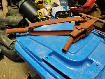 VENDESI - Attrezzi usati e nuovi per edilizia privata fai da te o piccola impresa edile , tipo trancia tondini in ferro , piegatrice tondini in ferro , n.15 morsetti per tubi innocenti , pinza per bloccaggio tondini in ferro in tensione per armature , argano elettrico posizionato su guida scorrevole per sollevare materiale edile , tutto come da foto .
