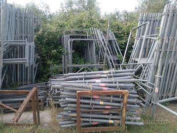 Vendo ponteggio zincato Edilponte a telai ad H compreso ripartenze strette , basette regolabili , para piede , para sassi , pedane zincate , botole scalette .PONTEGGIO COMPLETO MQ 600