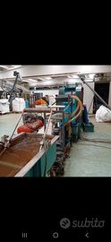 Estrusore 85 mono vite in ottime condizioni con molte parti revisionate e sostituite con nuovo ( resistenze,tutti termo regolatori nuovi digitali,ventilatori revisionati,Sonde,telerutori nuovi nel quadro ) vasca di degasagio ,pompa degasagio,cambio filtro semi automatico,taglierina per granulo,vibro vaglio circolare, vasca per aqua ,tutto revisionato,piu una VITE di scorta da 3,17m Insieme alla machina do altri accessori revisionati e perfettamente funzionanti