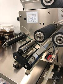Etichettatrice ETI 10 con quadro digitale semiautomatica è un prodotto da banco in grado di applicare adesivi di vari formati. L'etichettatrice semiautomatica ETI 10 offre la possibilità di lavorare non solo con bottiglie di formato cilindrico, ma anche modelli quadri, vasetti e altri contenitori in materiali sintetici. È in grado ad apporre etichetta e controetichetta sullo stesso rotolo, dalla stessa bobina e durante lo stesso ciclo. L'etichettatrice ETI 10 si presenta in una carenatura in acciaio inox ed è dotata di un rullo di trascinamento della carta siliconata di tipo zigrinato a sblocco rapido. ll PLC integrato permette all'etichettatrice ETI 10 di utilizzare numerose varianti di applicazione con l'aggiunta degli opportuni optionals, mentre il display digitale integrato permette una veloce selezione dei parametri di lavoro e di visualizzare informazioni utili per l'utilizzo della macchina. La macchina etichettatrice semiautomatica ETI 10 è gestita con scheda elettronica a microprocessore ed è in linea con le normative di sicurezza CE. Prezzo 2.200 euro + IVA. ARTICOLO VISIBILE E RITIRABILE A DERUTA(PG). NON SPEDISCO