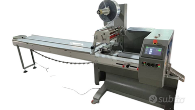 FLOWPACK AUTOMATICA ORIZZONTALE MODELLO POLARIS 350 Confezionatrice orizzontale automatica modello POLARIS 350 molto versatile e robusta nonché molto semplice da usare, La confezionatrice Polaris 350 è in grado di confezionare prodotti vari in sacchetti saldati su 3 lati e formati automaticamente a partire da una unica bobina di materiale termosaldante. Tutte le parti in contatto della Polaris 350 con il prodotto sono in acciaio inox 304. La confezionatrice presenta un conformatore, coppie di traino e saldatura longitudinale del film, gruppo di ganasce perfettamente lavorate a raggio, nastro di uscita sacchetti motorizzato, piani di appoggio delle buste in acciaio inox, 2 termoregolatori elettronici di precisione per il controllo delle saldature orizzontale e longitudinale, un set di chiavi e di ricambi per pronto intervento, manuale d'uso e manutenzione completo di schema elettrico. Protezioni antinfortunistiche a norme CE. La macchina presenta tre motori principali di tipo brushless di ultima generazione con il quale movimenta le parti necessarie all'alimentazione e al confezionamento automatico. Variazione lunghezza sacchetto regolabile direttamente da pannello touch screen a colori di controllo di cui è dotata la confezionatrice. Grazie al display a colori è possibile visualizzare il numero di buste effettuate. Dati tecnici macchina: Parti in contatto prodotto: acciaio 304 Larghezza sacchetto: da 50 a 160 mm Lunghezza sacchetto: da 150 a 330 mm Altezza prodotto max: 60 mm Diam. Max esterno della bobina: 320 mm Larghezza bobina max: 340 mm Spessore film: da 25 a 50 micron Velocita': 70/100 pz min Corrente elettrica: 220 v 50 hz singola fase Potenza: 2.4 kw Dimensioni macchina:Lunghezza 3744 x Larghezza 810 x altezza mm 1450 Peso confezionatrice: 300 kg Tempo di consegna 4 mesi Prezzo 19.000 euro+iva Garanzia 2 anni Disponiamo di vari modelli di confezionatrici anche verticali e dosatori.. Per info 3489112030 Alessandro De Bortoli Smc packaging machines