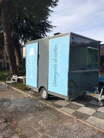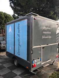 Vendo rimorchio friggitoria /gastronomia ideale x Fiere /Sagre/ Feste private /Party/ mercati Banco di esposizione di 3 mt. Banco acciaio inox possibilità fresco caldo Vani porta tutto Paratie esterne estensibili X pubblicità N. 3 friggitrici professionali da 18L Banco da lavoro / lavello / vano bombole