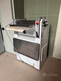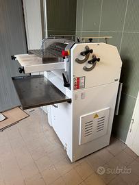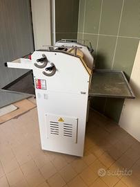 Questo macchinario è adatto alla produzione di filoni di tutti i tipi e dimensioni. La pasta viene convogliata, tramite un nastro, ai cilindri laminatori rettificati e cromati a spessore. I cilindri subiscono una particolare lucidatura aggiuntiva, che permette un ottimale distacco della pasta. Grazie all'utilizzo di feltri rasi in lana questo macchinario conferisce un perfetto arrotolamento del filone. USATA POCHE ORE