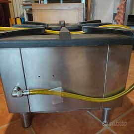 Fornellone a gas Metano, in buono stato, perfettamente funzionante. Acciao inox, piastra in ghisa, con vasca di raccolta in acciaio inox, estraibile e lavabile, completo di tubo di allacciamento omologato per gas metano. Termocopia funzionante. Piedi regolabili. Marca italiana MBM. Omologato e conforme alle normative CE. Trasporto a carico dell'acquirente.