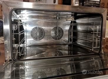 Forno professionale Unox Rossella a convezione con umidità regolabile camera di cottura in acciaio inox AISI 430, consente di impostare la temperatura da 80 °C a 260 °C, con una capacità di 4 teglie 60 x 40, forno Dimensioni 80 x 77,4 x 50,9 cm. Usato 4 stagioni, ottimo stato. Fatturabile