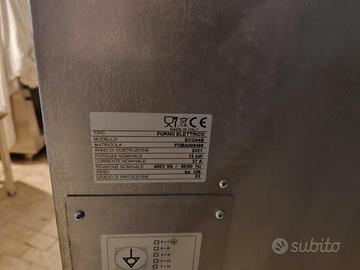Forno a due camere con pietra refrattaria, alimentazione 380. Misure forno larghezza 95, altezza 72, profondità 97. Misure camere 72 x 72. Altezza supporto 90 cm.