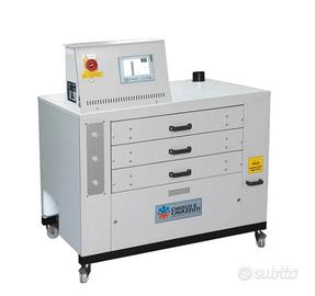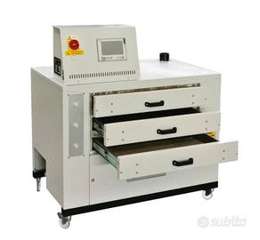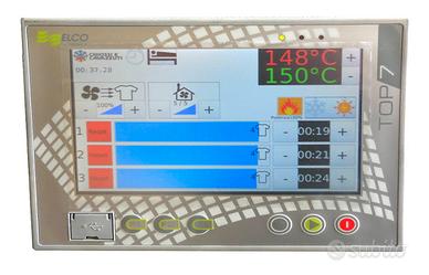 Forno per magliette serigrafia o dtg, acquistato nel 2022 ma praticamente mai usato. Occupa davvero poco spazio, la marca è una garanzia. Prezzo di listino ?.5250,00 + iva Prezzo di vendita ?.2900,00 + iva Visibile e provabile ad Ivrea (TO), non spediamo, l'acquirente si occupa del trasporto e dell'imballo. DIMENSIONI LU x LA x H 1190 x 835 x 1270 mm Il forno DiDO Shop è stato progettato specificatamente per essiccare inchiostri all'acqua stampati in digitale. Lavora molto bene con processi di asciugatura medio-lunghi, grazie al controllo della temperatura e alla sua efficiente circolazione dell'aria: per queste ragioni è indicato per tutti i tipi di tessuti delicati come Lycra, lana, seta e Flock. Ideale per piccole aziende e negozi grazie alle sue dimensioni compatte e ai consumi ridotti. La produzione oraria è approssimativamente di 30 capi con una permanenza di 5-6 minuti per indumento. Adatto ad ogni tipo di macchina da stampa digitale, la temperatura massima di lavoro è 180°C. L'aria è riscaldata tramite resistenze elettriche corazzate e viene reindirizzata tramite convezione verticale in modo da rendere la temperatura uniforme all'interno del forno. Inoltre l'aria in circolo viene filtrata per mantenere sempre pulite le ventole e le condutture interne, garantendone l'efficienza nel tempo. Ogni cassetto è indipendente ed è equipaggiato con un proprio timer, un indicatore di allarme sonoro e uno luminoso. Il DIDO Shop introduce una interfaccia touchscreen a colori, intuitiva e semplice da usare, con nuove ed importanti funzionalità come il riscaldamento e lo spegnimento automatico, per minimizzare il tempo perso dall'operatore