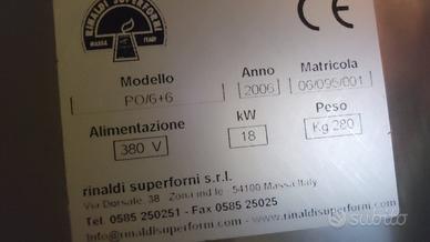 Vendo forno pizza professionale doppia camera, 6+6, Rinaldi Superforni. Usato ma in ottime condizioni. Smontaggio e trasporto a carico dell'acquirente.