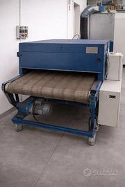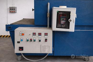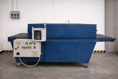 Vendo forno UV industriale a tappeto rotante UnionPrint TM-700UVF/e, anno 2019, perfettamente funzionante. Macchina professionale per polimerizzazione UV di inchiostri, vernici e trattamenti superficiali su diversi materiali. ? Vendita per inutilizzo Caratteristiche principali: o Tappeto trasportatore con velocità regolabile o Sistema UV con 4 lampade a vapori di mercurio da 6 kW regolabili o Regolazione indipendente intensità lampade o Controllo temperatura e ventilazione o Sistema aspirazione fumi/ozono o Struttura su ruote (facile movimentazione) Dati tecnici: o Modello: TM-700UVF/e o Anno: 2019 o Alimentazione: 400V trifase o Potenza totale: 26 kW o Assorbimento max: 63 A o Larghezza utile di passaggio (bocca): 75 cm o Velocità tappeto: regolabile o Altezza passaggio: fino a circa 150 mm Condizioni: o Usato, funzionante o Normali segni di utilizzo o Visionabile su richiesta Ideale per: o Serigrafia o Stampa UV o Settore grafico / industriale o Trattamenti superficiali UV