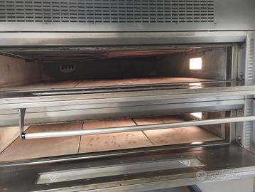 Vendo per inutilizzo forno doppio ingresso per pizzeria marca Polis modello T6 con capacità 6 teglie da pizza al taglio (totale sui due piani 12 teglie) corrispondenti a 12+12 pizze tonde, trifase 380V, assorbimento 13+13kW, perfettamente funzionante e disponibile per qualsiasi prova visto che attualmente è montato e collegato. Completo di cappa e basamento su ruote, con ruote nuove, facilmente spostabile. Smontaggio e trasporto a cura dell'acquirente. Il forno si trova a Castelnovo né Monti (RE).