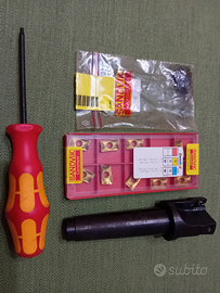 Vendo da privato per causa inutilizzo Fresa ad inserti Coromant R390-40E3-17M-SI, una scatola d' inserti R390-17 04 08M-Mm 2040 (10 inserti) , chiave TORX 15IP e una busta di viti di ricambio.
